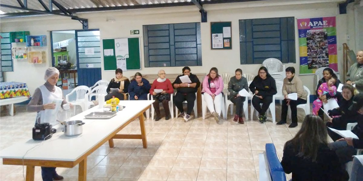Os alunos da Associação dos Pais e Amigos dos Excepcionais – Apae de Restinga Sêca e suas mães participaram de uma oficina de culinária por meio do Programa Mesa Brasil Sesc. A nutricionista Débora Martins esteve na instituição no dia 23 de agosto, durante a programação da Semana Nacional da Pessoa com Deficiência Intelectual e Múltipla, para ensinar algumas dicas de aproveitamento integral dos alimentos.