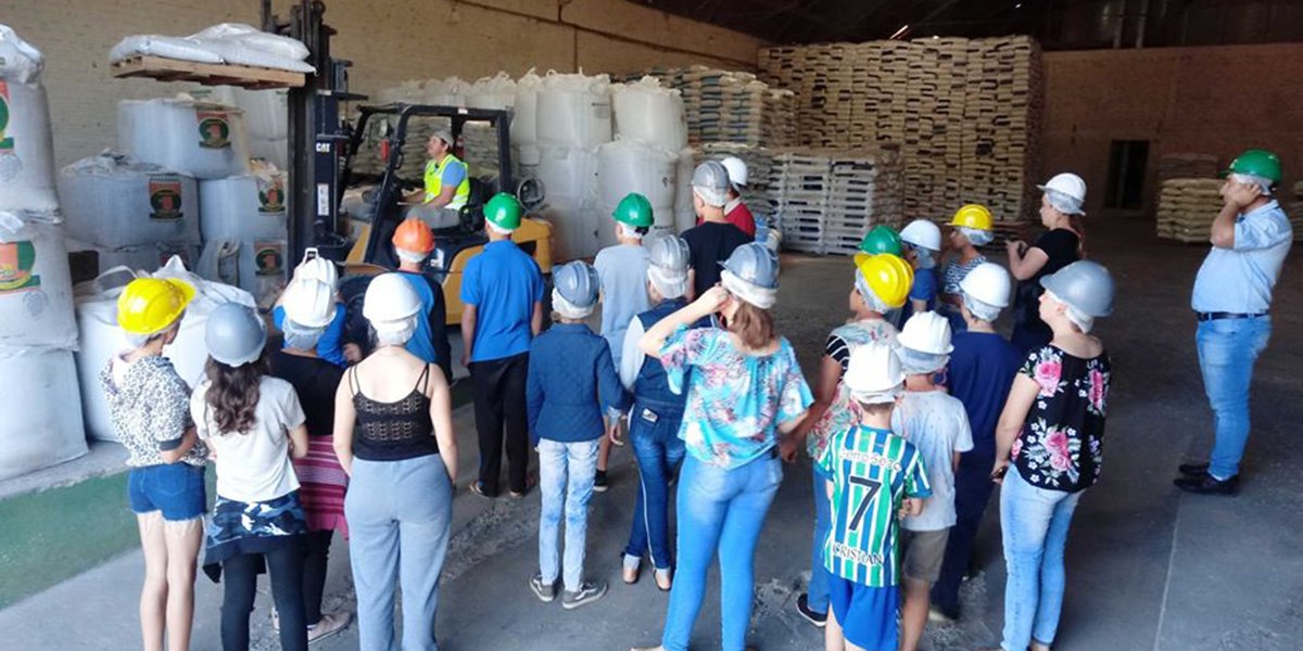 Após, os estudantes foram convidados a colocar os equipamentos de segurança fornecidos pela cooperativa e visitar a balança, a indústria, o empacotamento de arroz e o depósito de adubos. Para finalizar a vinda à cooperativa, os alunos ganharam um lanche e levaram para casa um pacote de arroz e um boné da Cooperagudo.