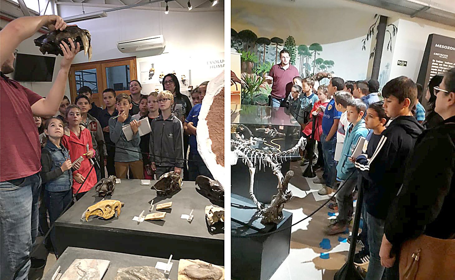 Durante a visita os alunos conheceram o trabalho desenvolvido no Centro de Apoio à Pesquisa Paleontológica e a exposição de fósseis de dinossauros descobertos na região.