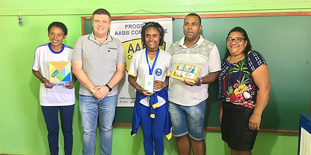 A entrega da premiação acontece nesta segunda-feira, dia 9, contando com a presença dos pais dos alunos premiados e também familiares do atleta Dionatan Machado. Como premiação cada aluno recebeu uma agenda AABB Comunidade 2020 com seus desenhos, uma medalha e um Smartfone. A Escola Leonor Pires de Macedo recebeu troféus e o programa AABB Comunidade ganhou uma agenda.