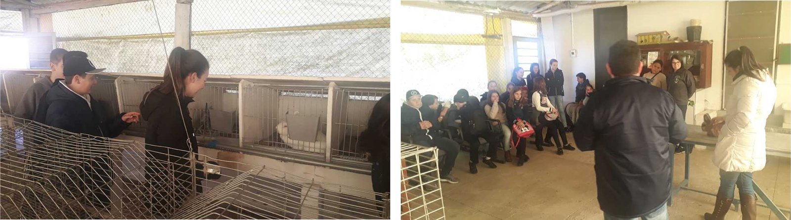 Também houve visitação a criação de coelhos do Setor de Cunicultura. O professor Alessandro Miola, juntamente com a bolsista Patricia Quatrin, explanaram sobre as atividades realizadas nessa divisão. Professores e alunos das Escolas de Silveira Martins também tiveram a oportunidade de acariciar alguns coelhos.