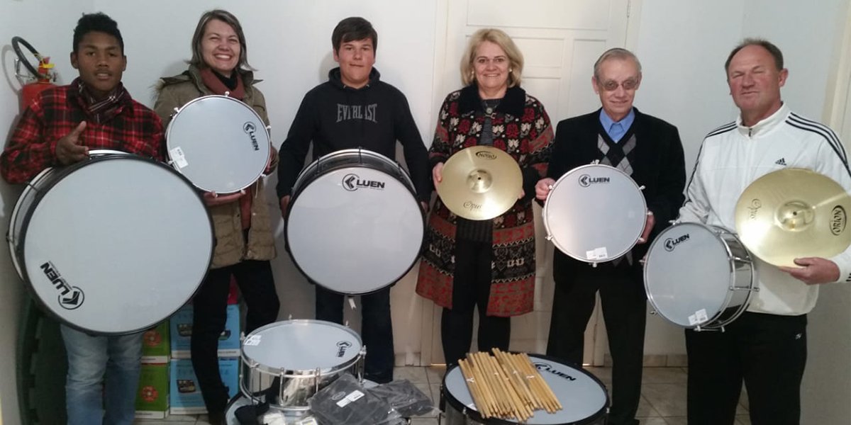 Na última quinta-feira, dia 5 de setembro, o prefeito municipal de Paraíso do Sul, Artur Ludwig, e a secretária de Educação e Cultura, Rosângela Baumhardt, realizaram a entrega dos instrumentos adquiridos para a Banda Marcial da Escola Rodrigues Alves. Os instrumentos foram solicitados pelo professor Sidnei Hörbe que realiza a regência da Banda.
