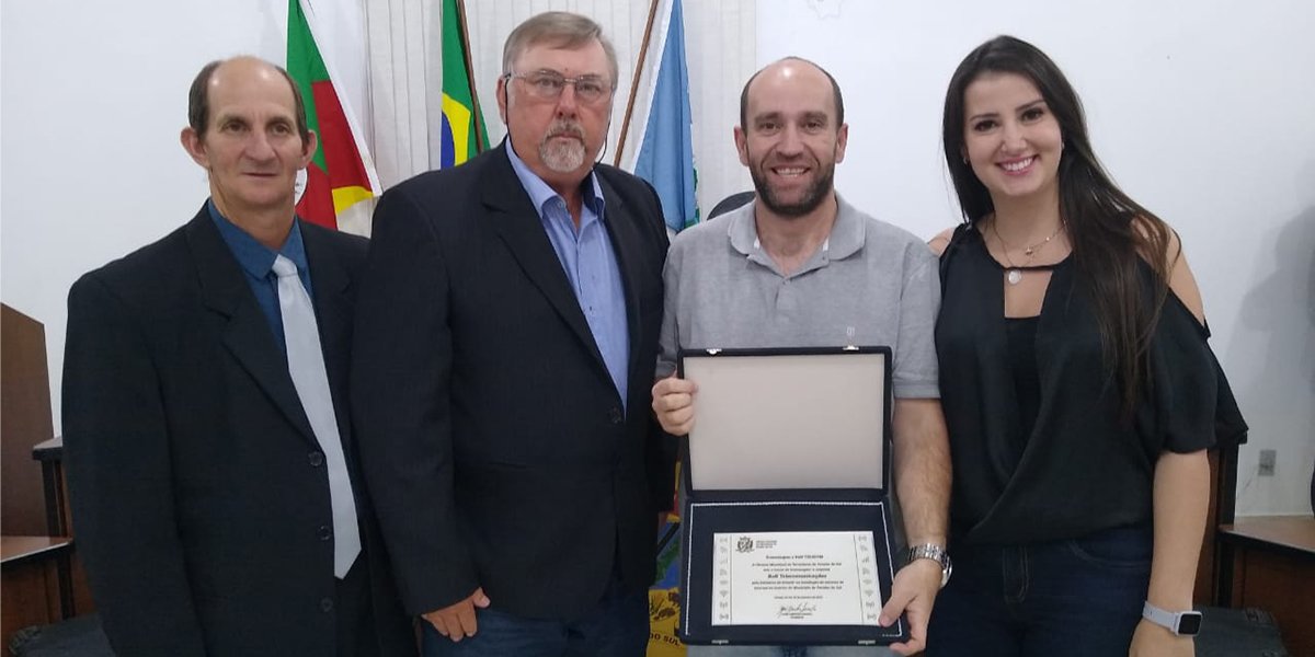Durante a sessão ordinária Câmara Municipal de Vereadores de Paraíso do Sul realizada na segunda-feira, dia 30, foi realizada a leitura da Moção de Agradecimento e a entregue de uma placa à empresa B&N Telecomunições pela iniciativa de investir na instalação de antenas de Internet no interior do município de Paraíso do Sul.
