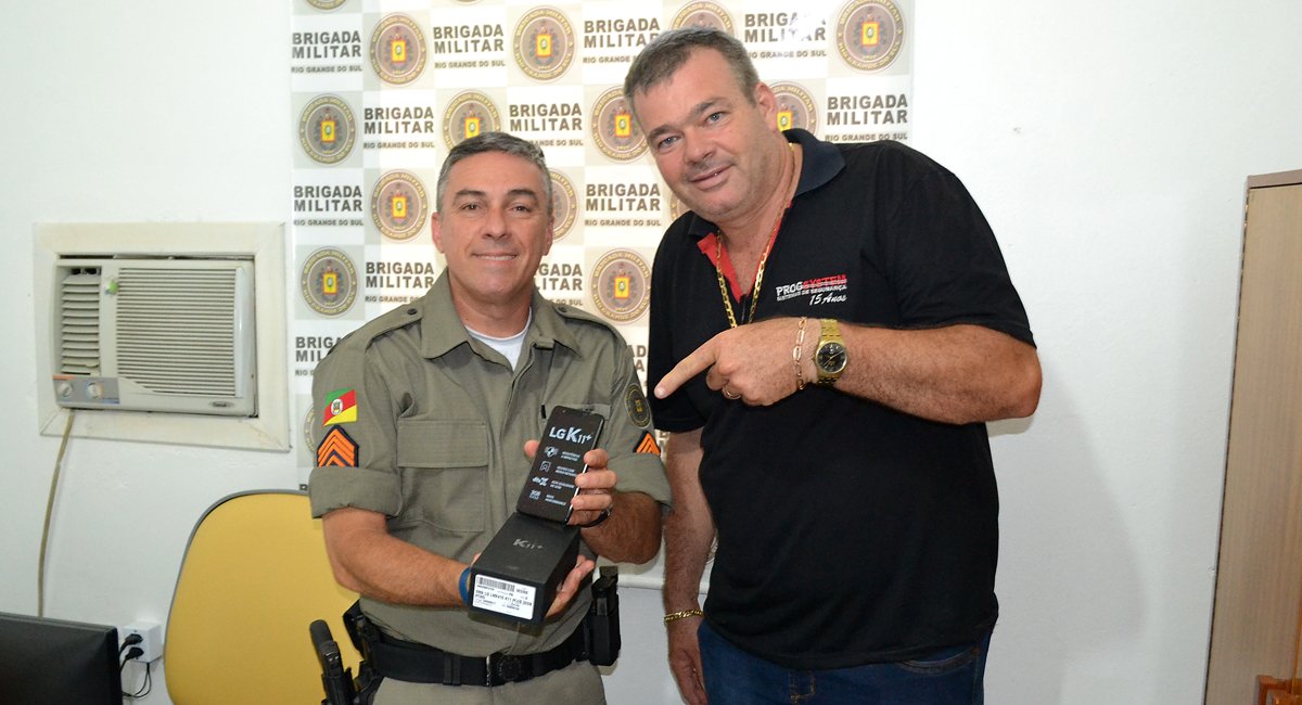 A empresa de segurança privada ProgSystem, com sede em Restinga Sêca, realizou na tarde desta segunda-feira, dia 9, a doação de um aparelho de telefone celular para a Brigada Militar do município.