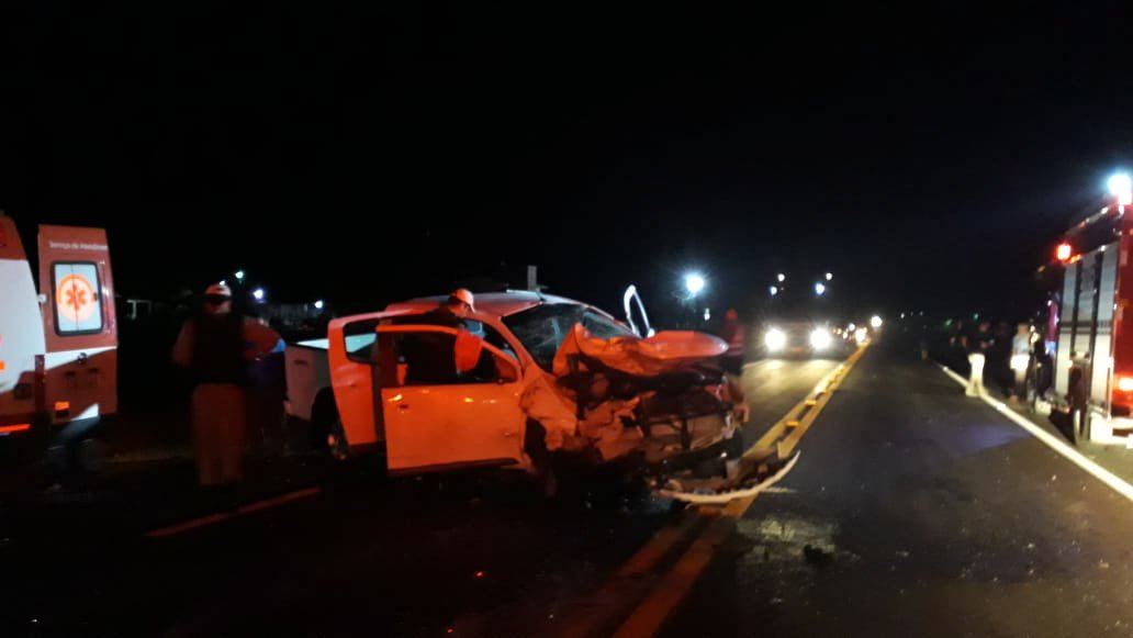 Segundo o Corpo de Bombeiros, um veículo Citroen e uma caminhonete S10 colidiram, sendo que o automóvel foi arremessado para fora da pista e a caminhonete ficou atravessada na rodovia.