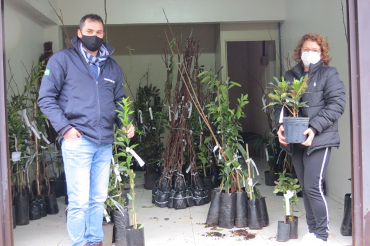 Nilmar Stefanello e Leani Bertoldo – Cerca de 750 mudas foram entregues a, aproximadamente, 30 agricultores