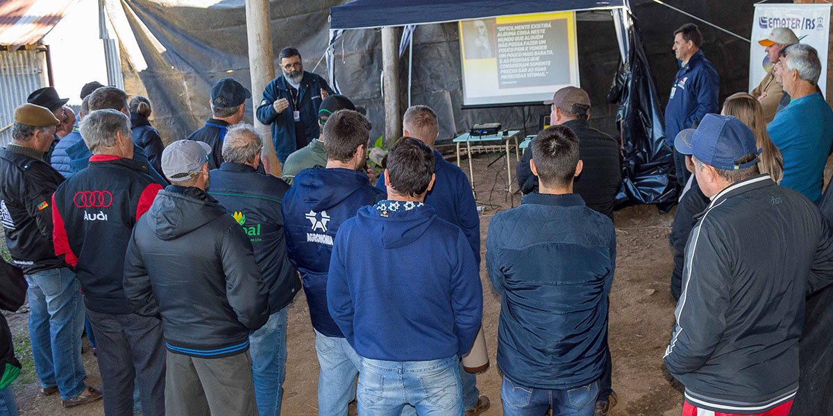 Objetivando difundir conhecimentos técnicos sobre armazenagem e secagem de grãos, foi realizada na quarta-feira, dia 14, um Dia de Campo sobre o tema, na cidade de Dona Francisca. O evento, organizado pela Emater/RS-Ascar, foi realizado na propriedade de Valnei e Roselene Segabinazzi, localizada em Linha Grande, contando com a presença aproxima de 90 participantes.