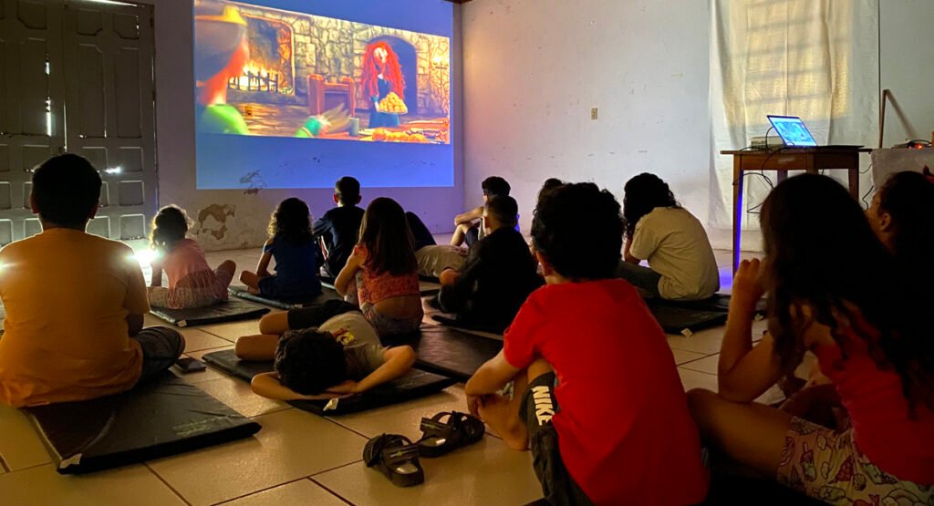 Ao todo, participaram 15 crianças pertencentes às famílias que residem na comunidade, que foram convidadas a partir da busca ativa realizada pelos integrantes da Secretaria Municipal de Assistência Social. Durante a exibição do filme as crianças receberam lanche e depois participaram de uma roda de conversa.
