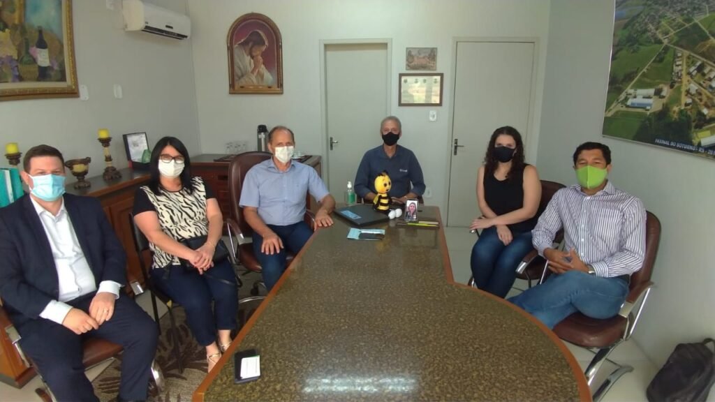 O prefeito em exercício de Faxinal do Soturno, Lourenço Domingos Moro, juntamente com a secretária de Educação, Cultura e Desporto, Simone Cancian Stieler e o assessor jurídico Diogo Zanella, recebeu uma comitiva do Sicredi Região Centro RS/MG. A reunião aconteceu no gabinete, na manhã de quarta-feira, dia 13 de janeiro, com o objetivo de tratar sobre o programa A União Faz a Vida. Representando o Sicredi estavam o vice-presidente, Renato Marin, o assessor jurídico, Eliézer Pinheiro, a assessora de programas sociais, Tatiane Stefanello, e a coordenadora administrativa e financeira da agência de Faxinal do Soturno, Fernanda Calegare Tronco, que participou através de uma videochamada.