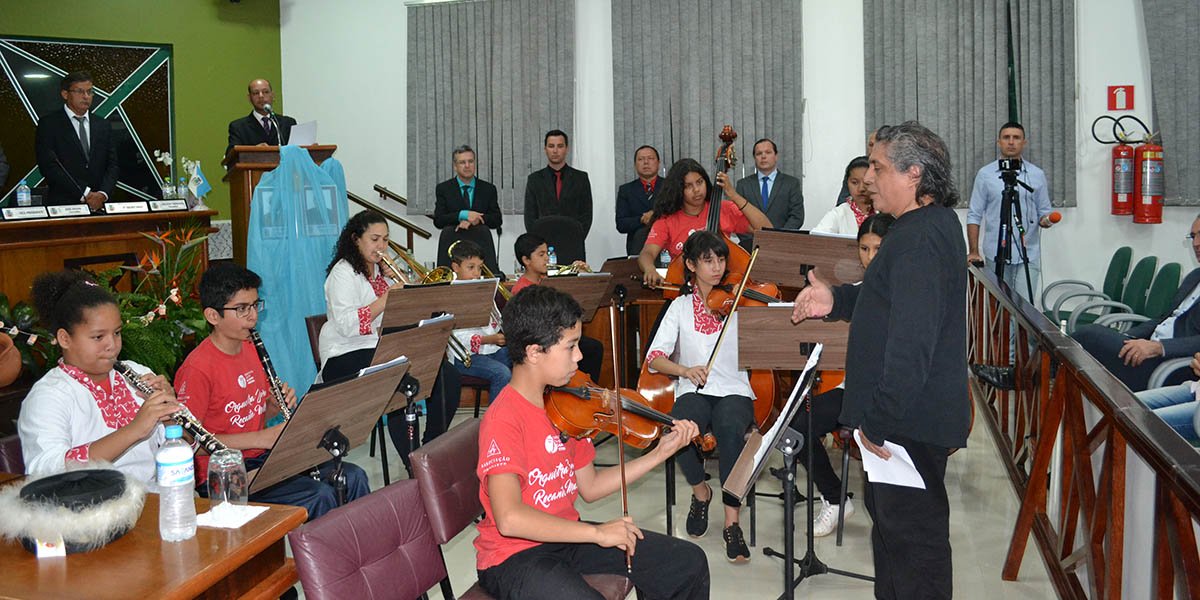 A noite de homenagens foi abrilhantada pela bela apresentação da Orquestra Jovem Recanto Maestro.