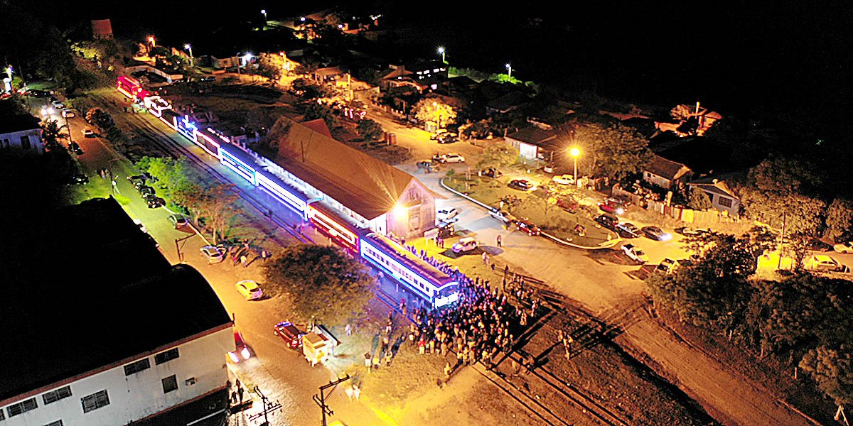 Após 40 anos parada, a máquina foi restaurada pela ABPF para ser usada em eventos turísticos especiais. Além da locomotiva iluminada, a composição virá com dois vagões de passageiros decorados.