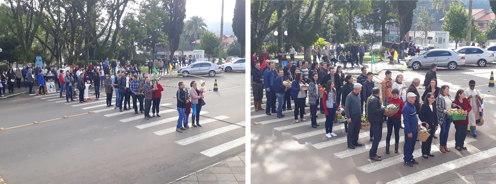 Contando com a participação de representações de todas as comunidades que integram a Paróquia, a missa de Ação de Graças pelo Centenário e pelas Missões Franciscanas foi celebrada em frente a Igreja Matriz, presidida pelo Arcebispo de Santa Maria, Dom Hélio Adelar Rubert, com presença de ex-párocos, irmãs, missionários e padres convidados.