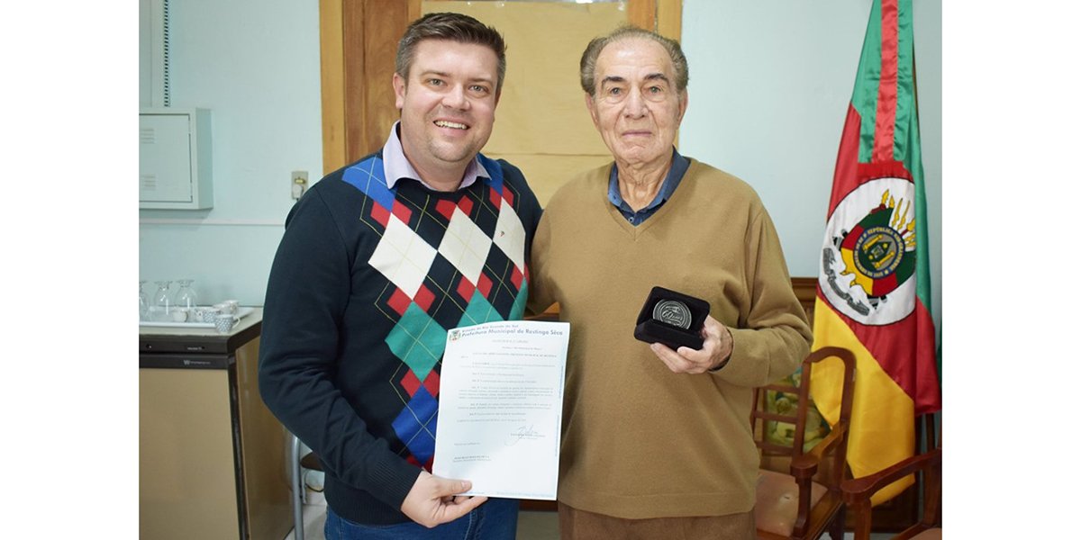 No dia 7 de agosto, o professor Protógenes Solon de Mello, recebeu do prefeito de Restinga Sêca, Paulo Ricardo Salerno, a medalha comemorativa aos 60 anos do Município. Na ocasião foi assinada Lei Municipal nº 3.480/2019, que instituiu o “Dia Municipal do Músico”, projeto de lei do vereador, José Solon da Silva, que será comemorado anualmente no dia 22 de junho, data de aniversário do músico Protógenes Solon de Melo.