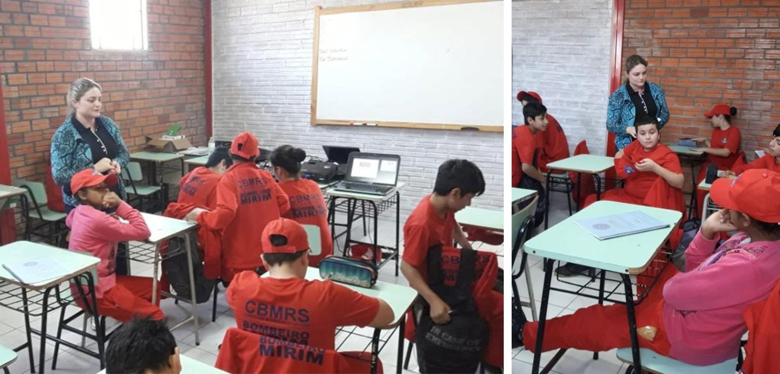 No último sábado, dia 17, a integrante do Núcleo de Apoio à Saúde da Família de Restinga Sêca (NASF), psicóloga, Graciele Argenta Bolzan, palestrou aos integrantes dos Bombeiros Mirins, sobre as “Regras de convivência para o bom convívio do grupo.”