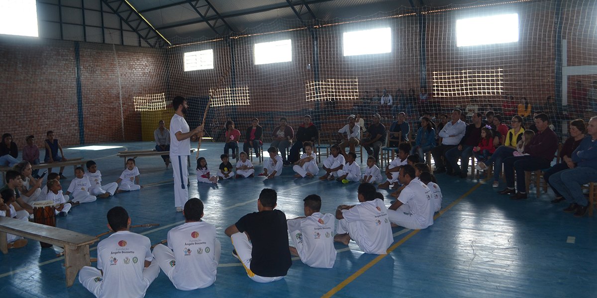 As aulas de capoeira vêm sendo ministradas semanalmente aos alunos das Escola Cândida Zasso e Tiradentes, através de parceria entre o Condica de Nova Palma, Secretaria Municipal de Educação e a Fundação Ângelo Bozzetto.