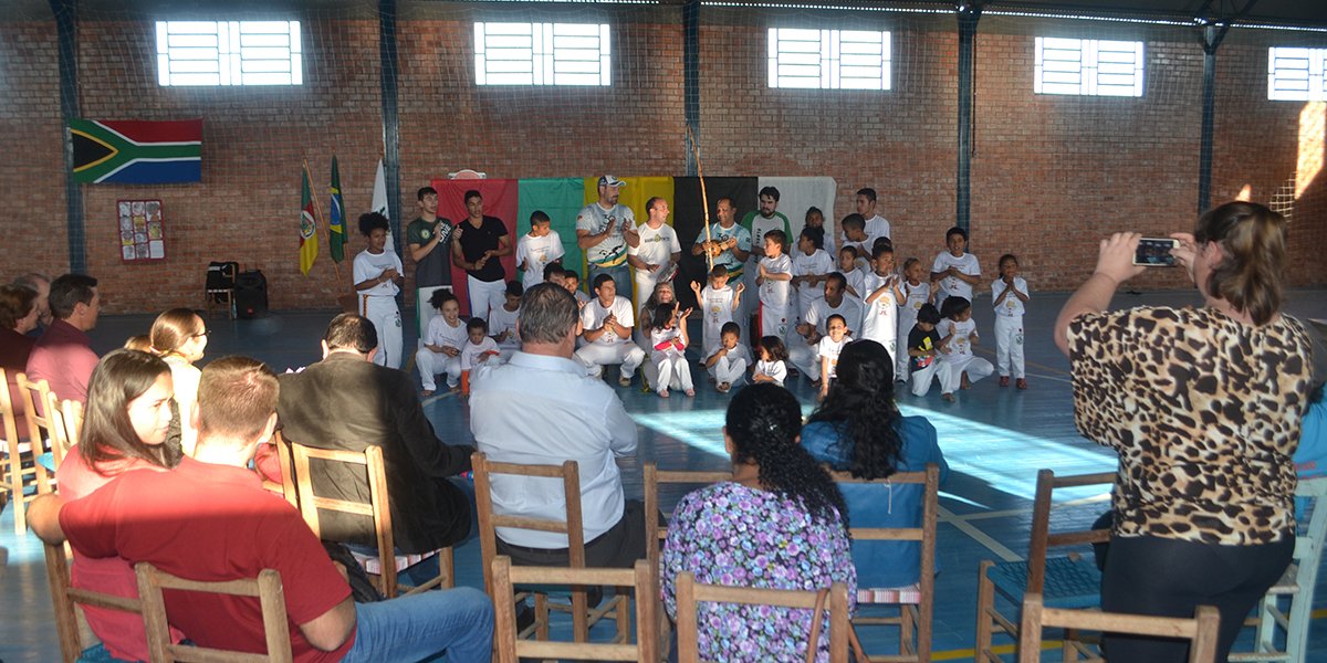 Com o comando do professor Tiago Telles, os presentes acompanharam uma roda de capoeira, com a participação, além dos alunos da comunidade, também de integrantes do Grupo Barra Vento, de Santa Maria.
