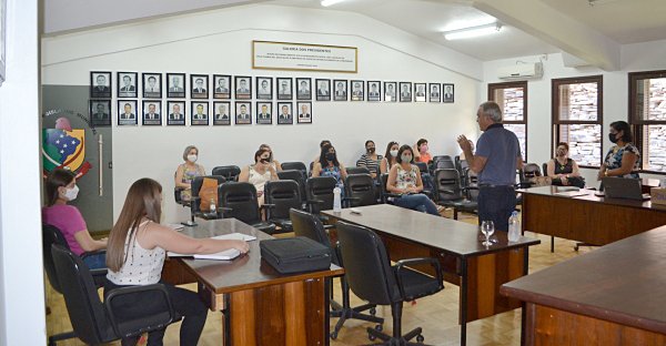 Na terça-feira, dia 23, o secretário da pasta, João Alberto Ghisleni, e a coordenadora pedagógica, Márcia Mayer, reuniram-se na Câmara de Vereadores para apresentar o plano orientador das atividades referentes ao início do ano letivo, bem como os protocolos que devem ser cumpridos nas escolas para prevenção da Covid-19. Estavam presentes diretores, vice-diretores, coordenadores pedagógicos, Conselho Tutelar, e a presidente do Conselho Municipal de Educação, Neuza Rodrigues.